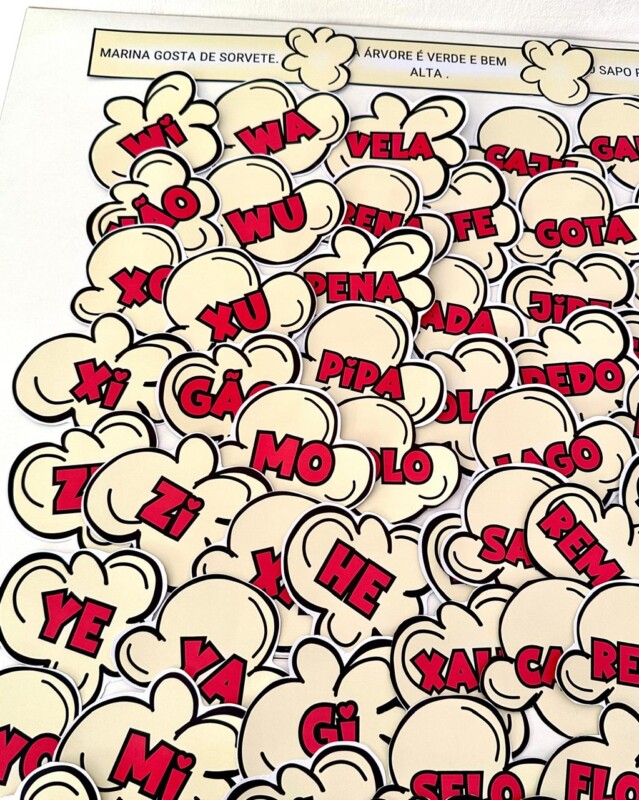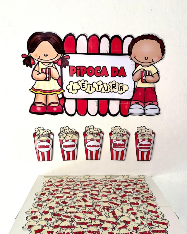 Kit Pipoca da Leitura para trabalhar leitura de letras, sílabas, palavras e