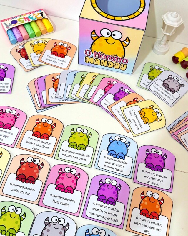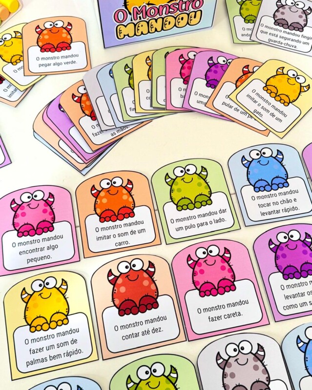 💡 Uma proposta divertida e interativa para usar em momentos de acolhida, transição ou recreação! As crianças adoram seguir os comandos do monstrinho! 😄🎉