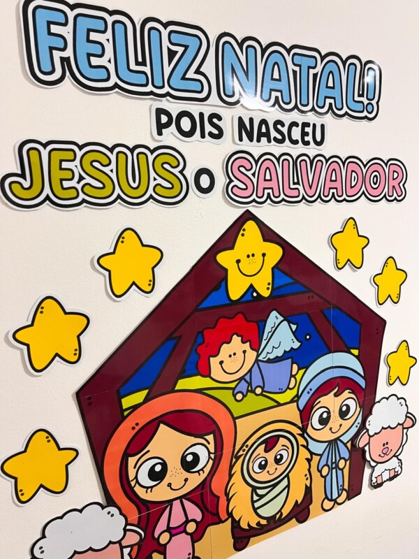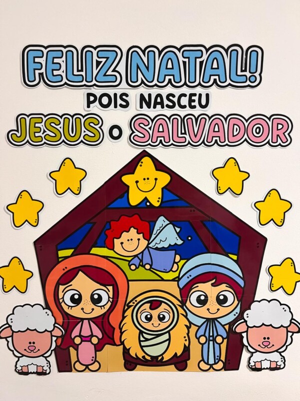 Um painel natalino na sala de aula valoriza as tradições
