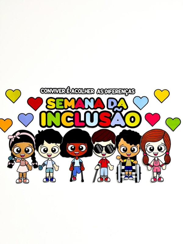 🎒 Ideal para educação infantil e ensino fundamental, o Painel Semana da Inclusão é perfeito para decorar a escola durante projetos de diversidade, empatia e convivência respeitosa.