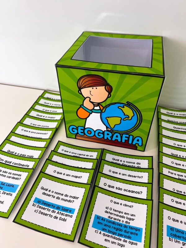 – Contém uma caixa para armazenar as fichas de perguntas.