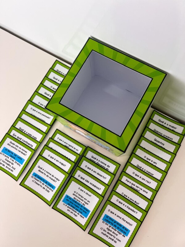 – Contém fichas com as respostas e fichas sem resposta para deixar a brincadeira mais dinâmica.